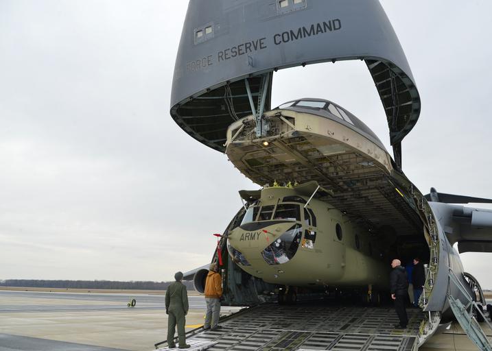 Keywords: Australian Army CH-47F Chinook partially inside a USAF C-5 Galaxy at Dover Air Force Base.jpg en Members of Team Dover and the 337th Airlift Squadron Westover Air Reserve Base Mass load two Boeing Chinook CH-47Fs into a C-5 Super Galaxy March 27 2015 at Dover Air Force Base Del Each helicopter weighted just shy of 24 000 pounds and were being shipped to the Australian Army U S Air Force photo/Airman 1st Class William Johnson 2015-03-27 21 01 29 http //www dover af mil/news/story asp id 123443781 U S Air Force photo/Airman 1st Class William Johnson other versions PD-USGov CH-47 Chinook in Australian service Dover Air Force Base Transport of CH-47 Chinook by C-5 Galaxy |