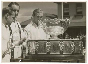 | Keywords: davis cup, 1939 daviscup1939 sam hood samhood davis cup daviscup john bromwich johnbromwich adrian quist adrianquist tennis merion cricket club merioncricketclub pratten park prattenpark photo border monochrome Australians John Bromwich and Adrian Quist won the final of the Davis Cup at the Merion Cricket Club in Haverford, PA, United States on 2-5 September 1939, against a team of four Americans. To 2011, the United States had won the Davis Cup 32 times, Australia 28 times and Great Britain and France 9 times each. Today the base of the Cup is much higher to accommodate all the winners' plates Format: Photograph Find more detailed information about this photographic collection: acms.sl.nsw.gov.au/item/itemDetailPaged.aspx?itemID=153771 From the collection of the State Library of New South Wales : www.sl.nsw.gov.au/ Australians John Bromwich and Adrian Quist won the final of the Davis Cup at the Merion Cricket Club in Haverford, PA, United States on 2-5 September 1939, against a team of four Americans. To 2011, the United States had won the Davis Cup 32 times, Australia 28 times and Great Britain and France 9 times each. Today the base of the Cup is much higher to accommodate all the winners' plates Format: Photograph Find more detailed information about this photographic collection: acms.sl.nsw.gov.au/item/itemDetailPaged.aspx?itemID=153771 From the collection of the State Library of New South Wales : www.sl.nsw.gov.au/ |