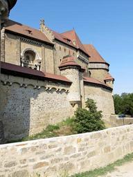 Keywords: austria castle summer day blue sky brick wall roof tile medieval architecture fortress building