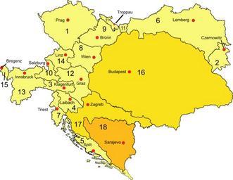 | Keywords: Austria-Hungary map de.svg <u>Österreich-Ungarn 1910</u> Cisleithanien 1 Böhmen 2 Bukowina 3 Kärnten 4 Krain 5 Dalmatien 6 Galizien 7 Küstenland 8 Österreich unter der Enns 9 Mähren 10 Salzburg 11 Schlesien 12 Steiermark 13 Tirol 14 Österreich ob der Enns 15 Vorarlberg; Transleithanien 16 Ungarn 17 Kroatien und Slawonien; Kondominium 18 Bosnien und Herzegowina <u>Ausztria “Magyarország</u> Osztrák Császárság Ciszlajtánia 1 Csehország 2 Bukovina 3 Karintia 4 Krajna 5 Dalmácia 6 GalÃcia 7 Tengermellék 8 Alsó-Ausztria 9 Morvaország 10 Salzburg 11 Szilézia 12 Stájerország 13 Tirol 14 FelsÅ‘-Ausztria 15 Vorarlberg; Magyar Királyság Transzlajtánia 16 Magyarország 17 Horvát-Szlavónország; osztrák “magyar kondomÃnium 18 Bosznia és Hercegovina <u>Austria-Hungaria</u> Cisleithania 1 Bohemia 2 Bucovina 3 Carinthia 4 Carniola 5 Dalmatia 6 Galicia 7 Litorale 8 Austria Inferior 9 Moravia 10 Salisburgum 11 Silesia 12 Styria 13 Tirolis 14 Austria Superior 15 Cisarulana; Transleithania 16 Hungaria 17 Croatia et Slavonia Condominium 18 Bosnia et Herzegovina <u>Austro “WÄ™gry</u> Cesarstwo Austrii Przedlitawia 1 Czechy 2 Bukowina 3 Karyntia 4 Kraina 5 Dalmacja 6 Galicja i Lodomeria 7 Pobrzeże 8 Austria przed AnizÄ… 9 Morawy 10 Salzburg 11 ÅšlÄ…sk Austriacki 12 Styria 13 Tyrol 14 Austria za AnizÄ… 15 Vorarlberg; Królestwo WÄ™gier Zalitawia 16 WÄ™gry 17 Chorwacja; BoÅ›nia 18 BoÅ›nia i Hercegowina <u>Austria “Hungary</u> Empire of Austria Cisleithania 1 Bohemia 2 Bukovina 3 Carinthia 4 Carniola 5 Dalmatia 6 Galicia 7 Küstenland 8 Lower Austria 9 Moravia 10 Salzburg 11 Silesia 12 Styria 13 Tyrol 14 Upper Austria 15 Vorarlberg; Kingdom of Hungary Transleithania 16 Hungary proper 17 Croatia-Slavonia; Austrian-Hungarian Condominium 18 Bosnia and Herzegovina Austria-Hungary_map svg 2011-05-24 Austria-Hungary_map svg IMeowbot derivative work Furfur <span class signature-talk >talk</span> Deutsche à bersetzung/German translation Furfur Austria-Hungary_map svg PD-user-w Original upload log This image is a derivative work of the following images File Austria-Hungary_map svg licensed with PD-user-w 2011-02-03T16 44 20Z Vearthy 783x605 339358 Bytes <nowiki>Kingdom of Hungary back in green changed too strong orange to a bit lighter pastel color</nowiki> 2010-04-16T22 48 32Z Vearthy 783x605 339320 Bytes <nowiki>changed colours</nowiki> 2009-09-14T22 49 21Z Kirk 783x605 338680 Bytes <nowiki>english names of capitals</nowiki> 2009-09-14T22 41 55Z Kirk 783x605 338634 Bytes <nowiki>correctioons</nowiki> 2009-08-09T21 00 32Z Gugganij 783x605 322419 Bytes <nowiki>Reverted to version as of 19 00 24 July 2009 reason the province Küstenland was blackened</nowiki> 2009-07-25T22 13 52Z Cäsium137 800x640 280574 Bytes <nowiki>Valid IDs</nowiki> 2009-07-24T23 41 46Z Cäsium137 800x640 280239 Bytes <nowiki>smooth</nowiki> 2009-07-24T19 00 43Z Hk kng 783x605 322419 Bytes <nowiki>a bit of cleanup</nowiki> 2009-07-24T18 32 00Z Hk kng 783x605 326688 Bytes <nowiki>testing whether using another font helps</nowiki> 2009-07-24T09 46 45Z NordNordWest 783x605 326543 Bytes <nowiki>Reverted to version as of 05 20 30 March 2007</nowiki> 2009-07-24T09 36 23Z Zsoni 776x600 2107 Bytes <nowiki>Korrektur </nowiki> 2007-03-30T05 20 57Z W B 783x605 326543 Bytes <nowiki>syntax cleanup groups named ids sorted </nowiki> 2006-06-28T23 01 58Z Neoneo13 783x605 243229 Bytes <nowiki>Taken from english Wikipedia Created by user IMeowbot </nowiki> Uploaded with derivativeFX Austria in the 19th century Maps of Austria-Hungary SVG maps showing history in German |