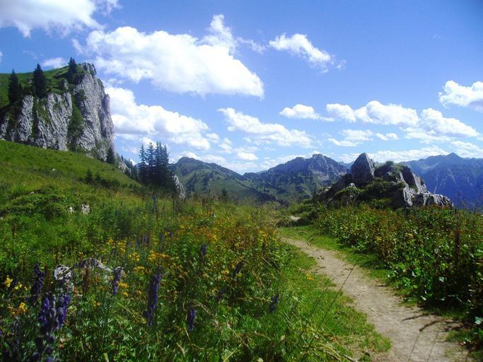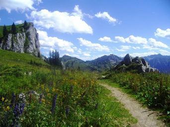 Keywords: austria landscape mountains sky clouds wildflowers plants grass nature outside valley summer spring country countryside