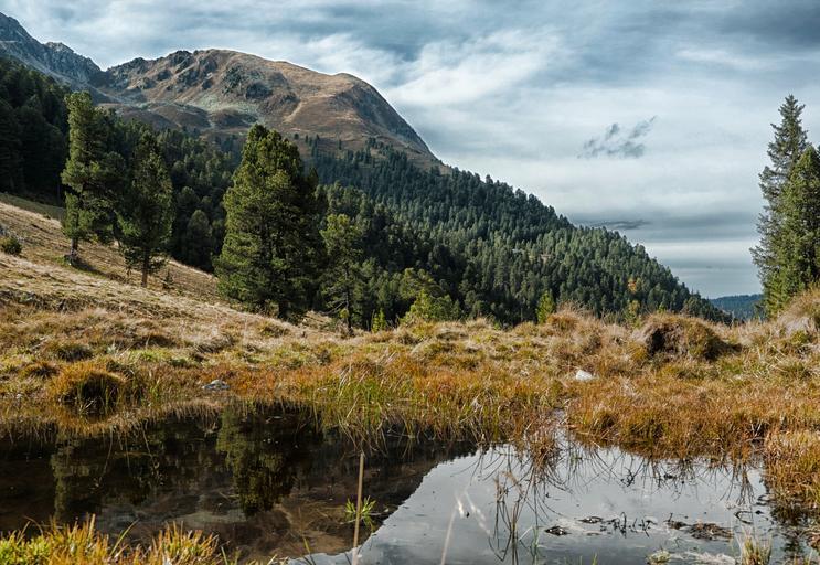 Keywords: austria landscape scenic sky clouds pond water reflections mountains forest trees woods nature outside country countryside summer spring