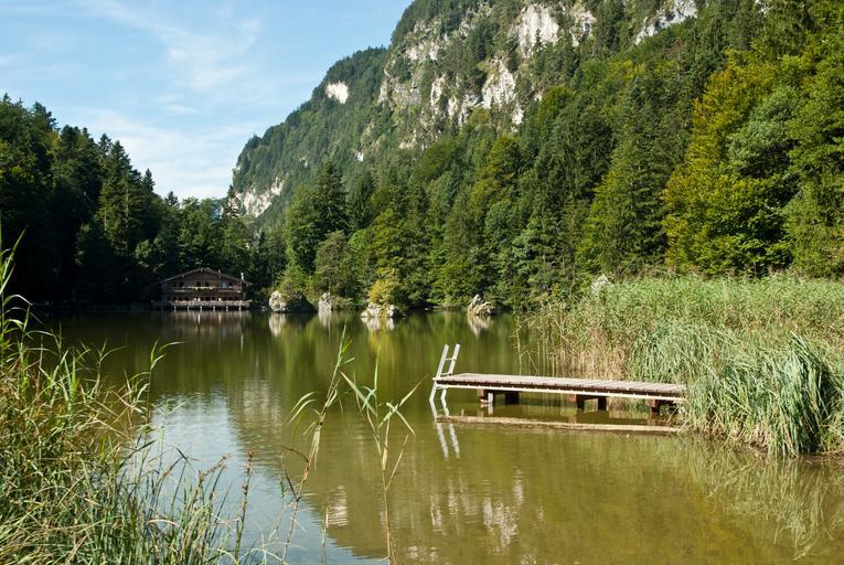 Keywords: austria scenic sky clouds landscape house home lake water reflections mountains forest trees woods dock pier nature outside country countryside summer spring