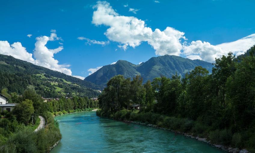 Keywords: austria st johann river water summer landscape nature beautiful mountains europe