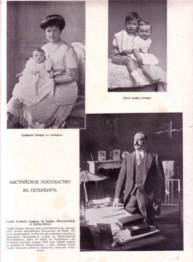 | Keywords: Austrian Embassy Sergievskaya 1914 1.jpg Frederic Szapáry de Szapár Mura-Szombat et Szichy-Szizet Frederic Szapáry de Szapár Mura-Szombat et Szichy-Szizet Г аф Сапа и начал свою дипломатическую ка ье у как атташе Авст ийского посольства в Риме Пе ед назначением в Россию он занимал должность начальника иност анного отдела в инисте стве Иност анных Дел в Вене; в Пете бу г он назначен послом осенью 1913 года Г аф женат на п инцессе Виндшиг ец у него четве о детей Г аф большой любитель искусств большой спо тсмэн digitized by Lev Zharzhevsky оциф овал Л Жа жевский author 1914 fragments Austrian Embassy Sergievskaya 1914 1a Friedrich von Szapary jpg Austrian Embassy Sergievskaya 1914 1b Hedwig von Szapáry jpg Austrian Embassy Sergievskaya 1914 1c children of Count Szapáry jpg PD-RusEmpire Austro-Hungarian Embassy in Saint Petersburg 1914 in Saint Petersburg Stolitsa i Usad'ba magazine 1914 Szapáry family |