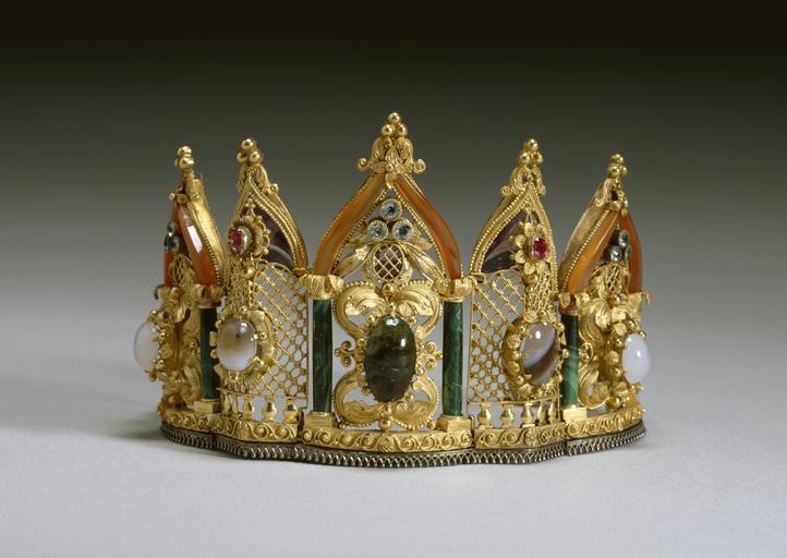 | Keywords: Austrian - Gothic-Style Bracelet - Walters 571999.jpg This extravagant bracelet consists of five arched segments and three foliate segments Judging from indentiations in the original leather case this piece was originally a diadem with two additional foliate elements rather than a bracelet All the pieces are hinged together and carried out in elaborate openwork decorated with precious stones and scrollwork The five large segments imitate Gothic architecture with ogive arches and columns ca 1870 gold carnerlian malachite moss agate amethysts aquamarines rubies cm 6 99 accession number 57 1999 22276 Private collection Austria Felix Laurence Paris Raphael Esmerian New York Walters Art Museum Gift in memory of Paul Esmerian 1972 Jewelry - Ancient to Modern The Walters Art Gallery Baltimore 1979-1980 Objects of Adornment Five Thousand Years of Jewelry from the Walters Art Gallery Baltimore Cooper-Hewitt National Design Museum New York; Chrysler Museum of Art Norfolk; Carnegie Museum of Art Pittsburgh; San Antonio Museum of Art San Antonio; Philbrook Museum of Art Tulsa; Honolulu Academy of Arts Honolulu; New Orleans Museum of Art New Orleans; Milwaukee Art Museum Milwaukee; Minneapolis Institute of Arts Minneapolis; Toledo Museum of Art Toledo; The John and Mable Ringling Museum of Art Sarasota 1984-1987 Jewelry from the Walters Art Museum and the Zucker Family Collection The Walters Art Gallery Baltimore 1987 Bedazzled 5 000 Years of Jewelry from the Walters Art Museum Frist Center for the Visual Arts Nashville; The John and Mable Ringling Museum of Art Sarasota; The Walters Art Museum Baltimore 2006-2009 Bedazzled 5 000 Years of Jewelry El Paso Museum of Art El Paso 2010 place of origin Austria Walters Art Museum license Jewellery in the Walters Art Museum Jewellery of Austria Gothic revival in Austria Gothic revival jewellery |