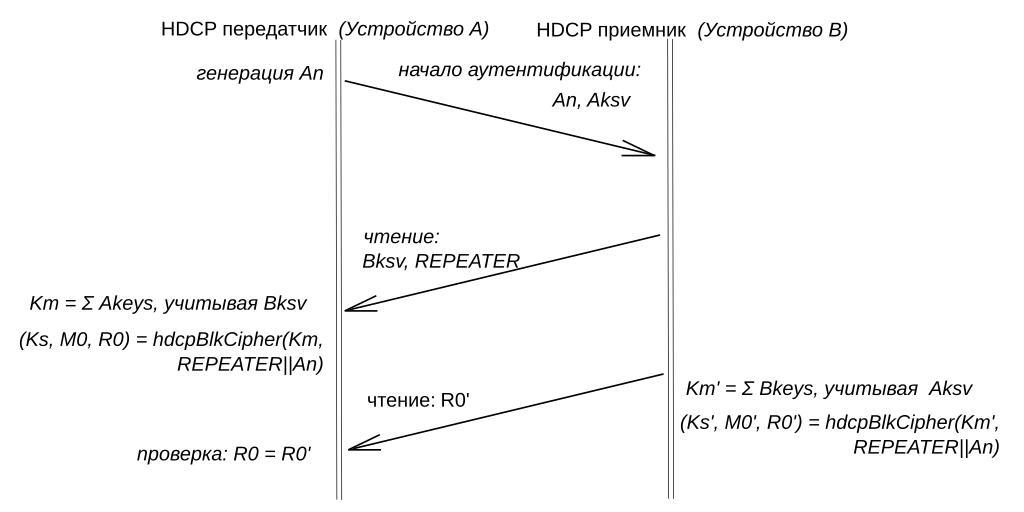 Keywords: Authentication part1.svg This slide descirbes the first part of work of HDCP authentication protocol Own 2009-11-23 Bizarrre Cryptography diagrams Sequence diagrams Authentication Protocol