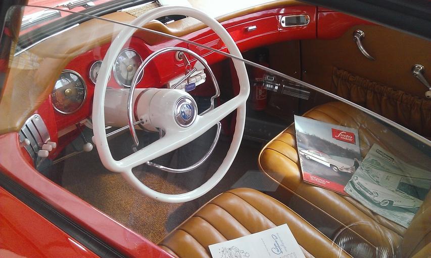 Keywords: auto interior steering wheel wartburg castle eisenach oldtimer old places of interest museum automobile museum dashboard design red ddr