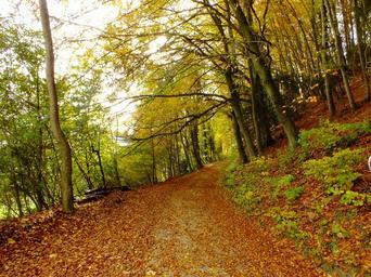 Keywords: autumn away leaves tree green trees forest red leaf yellow sheet