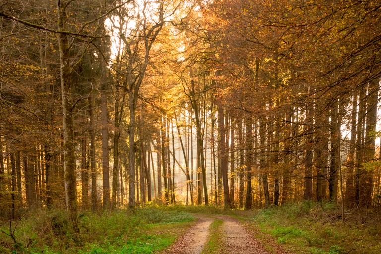 Keywords: autumn forest leaves sun back light trees nature autumn forest forest path mood golden autumn sunset leaves in the autumn fall color light golden coloring color away idyll trail evening sun