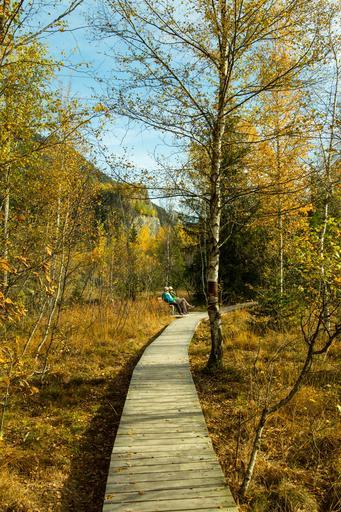 Keywords: autumn forest path wooden track moor fall leaves hiking autumn forest forest trail edge of the woods rest forest nature away