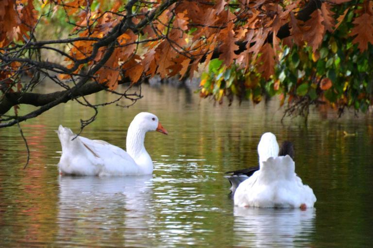 Keywords: autumn geese golden autumn pond swim animal water autumn mood