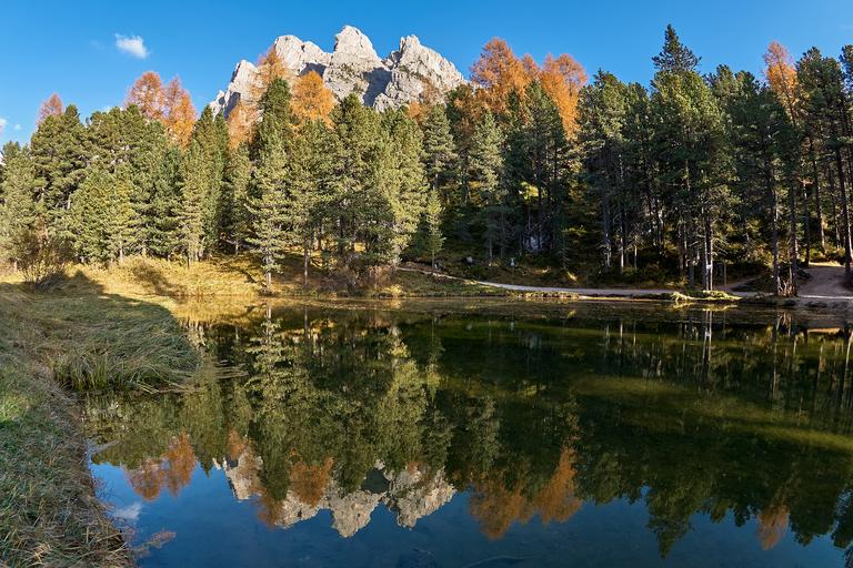 Keywords: autumn lake trees forest nature landscape farbenspiel dolomites val gardena south tyrol