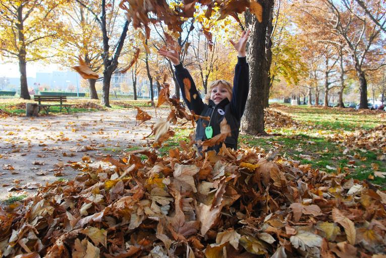 Keywords: autumn leaves playing boy outside bunch nature fall outdoors park