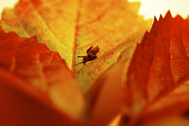Keywords: autumn october leaf colorful snail leaves forest nature friendly funny small mini animal