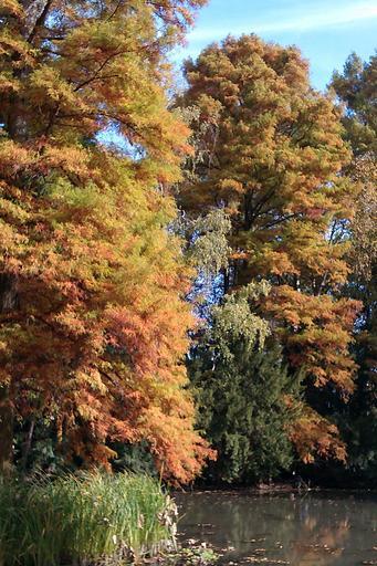 Keywords: autumn trees holidays lake nature yellow green foliage golden autumn