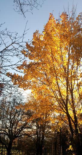 Keywords: autumn yellow tree morning sun branches leaf leaves