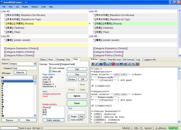 Keywords: AWB running.PNG Free screenshot GPL en The AWB4600 software running at Windows XP pt O programa AWB4600 funcionando no Windows XP Own Jesielt 2009-08-15 AutoWikiBrowser