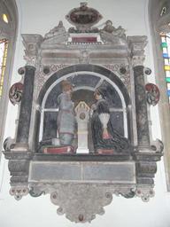 | Keywords: AyshfordMonumentBurlescombe.jpg en Ayshford Mural monument Burlescombe Church Devon Text incised on slate tablet on monument To the memory of Elizabeth Ayshford wife of Arthur Ayshford eldest sonne of Henry Ayshford Esquier only daughter of the right honourable Charles Lord Wilmot Viscount of Atllone i e Athlone late general of his majesties forces in the kingdome of Ireland now a privy counceller both of England Ireland She dyed the 23th sic yeare of her age Anno D omi ni 1635 June 13 o own Unknown sculptor 1635 St Mary the Virgin's church Burlescombe Wall mounted church monuments in Devon |