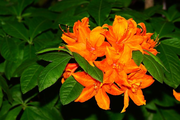 Keywords: azalea rhododendron flowers orange flowers plant garden flower bush spring summer background bright
