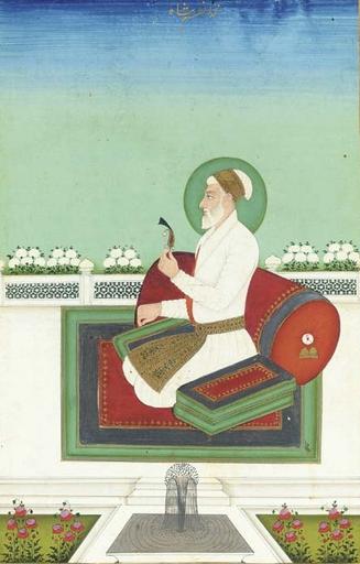 Keywords: Azam shah (cropped).jpg en A later portrait of Prince Azam Shah Aurangzeb's third son who did not outlive his father Source http //www christies com/LotFinder/search/LOTDETAIL ASP sid intObjectID 4346810 SE CMWCAT03+351787+556451033+ QR M+1+0+Aqc0000900+342290++Aqc0000900+ entry india SU 1 RQ True AN 42 downloaded Aug 2004 A Mughal Prince Muhammad Azam Shah d 1707 India Deccan Hyderabad 1875-1900 Depicting the nimbated and turbaned prince on a carpet backed by a pillow on a terrace with fountain below inscribed above in nastaliq Muhammad Azam Shah; with blue borders painted with gold vines; mounted in an album page; framed Image 9ΒΌ x 6 1/8 in 23 5 x 15 5 cm 1875-1900 http //www columbia edu/itc/mealac/pritchett/00routesdata/1600_1699/aurangzeb/azamshah/azamshah html India Deccan Hyderabad PD-Art Paintings of Mughal emperors Azam Shah Azam shah jpg |