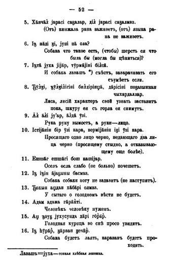 | Keywords: Azerbaijani proverbs 52.jpg en Page with Azerbaijani proverbs written by Alexander Kalashev from the words of Rza Miriyev inhabitant of Khatynbulag village Jabrayil uyezd Yelizavetpol guberniya Сбо ник мате иалов для описания местностей и племен Кавказа Выпуск восемнадцатый Отдел II Ст 52 Azerbaijani proverbs written by Alexander Kalashev from the words of Rza Miriyev 1894 PD-old Azerbaijani proverbs Azerbaijani manuscripts | ||||