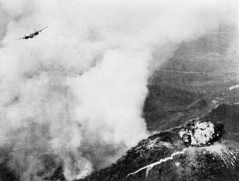 Keywords: B-26B 452BW(L) bombing Korea May1951.jpg A USAF Douglas B-26B Invader of the 452nd Bombardment Wing bombing a target with napalm in North Korea May 1951 <br> Original caption Flames of destruction eat through a concentration of enemy troops on this ridge as the Fifth Air Force B-26 Invader bomber of the 452nd Bombardment Wing pulls away bomb-bay doors still open after loosing napalm jellied gasoline bombs on the area Continued bombing of tactical targets such as these in support of United Nations forces is depriving the Communists of sorely needed war equipment in their spring offensive ca 05/1951 U S National Archive photo ARC Identifier 542233 Local Identifier 342-AF-80590AC http //arcweb archives gov/arc/digital_detail jsp pg 12 rn 12 tn 542219 st b rp details nh 15 1951-05 USAF PD-USGov B-26 Invaders in the Korean War Bombing during the Korean War |