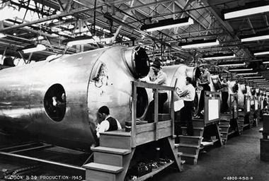 Glenn L. Martin produced 536 B-29 "SuperFortress" bombers during World War Two. Also producing B-29 SuperFortress bombers during WWII were the Boeing Aircraft Company and the Bell Aviation Company. factory wwii hudson bomber b29 superfortress detroitmi glenlmartin |