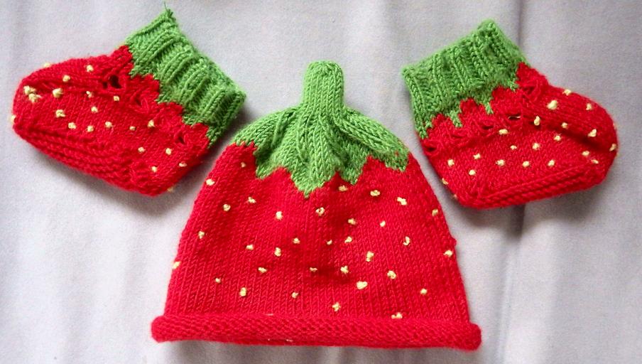 Keywords: baby erstlingsmütze strawberry cap strawberry shoes