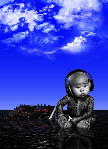 Keywords: baby sky mar tattoo headphones listen to music dj food mixer music
