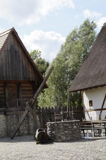 Keywords: bach ritterburg knight's castle castle lower needle middle ages wooden castle tower kanzach southern germany medieval woods building architecture reconstruction reconstructed baden württemberg germany fountain courtyard