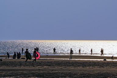 Keywords: back light beach sand beach swim st peter ording nordfriesland coast north sea sea sky sun world natural heritage summer holiday recovery