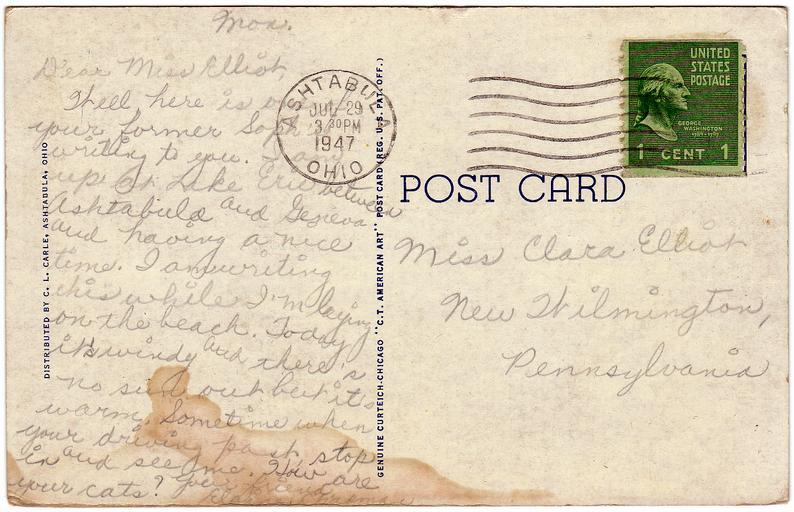 | Keywords: curt teich co. curtteichco c.t. american art ctamericanart postcard postmarked c.l. carle clcarle ashtabula, ohio ashtabulaohio stamp divided back dividedback used cancel ohio ashtabula white border whiteborder text writing document Description on front of card: New Viaduct, Ashtabula, Ohio Publisher: The C.L. Carle, Ashtabula, Ohio. Genuine Curteich-Chicago "C.T. American Art" post card, a tradename under Curt Teich Co., Chicago, Illinois Postmark date: 1947 Used. Publisher Note: Curt Teich emigrated to Chicago in 1895. He had worked as a lithographer in Lobenstein, Germany. He founded the Curt Teich Company in 1898, concentrating on newspaper and magazine printing. He was an early publisher of postcards, but he didn't begin printing them himself until 1908. According to MetroPostcard.com, "As his competition dwindled, his sales expanded and his American factories would eventually turn out more postcards than any other in the United States. " The company was best known for their wide range of advertising and postcards of North America. By the 1920s, it was producing so many postcards with borders that they became recognized as a type dubbed "White Border Cards," creating an "era." Curt Teich started using offset presses in 1907, but it took a number of years before he had offset presses made to his satisfaction, and many more years for him to perfect the method. His innovations in this printing technique directly led to the production of what we now call "linens" by the early 1930s. The company aided the war effort during the second world war by also printing many military maps. Curt Teich eventually turned management of the company over to his son, but he remained active in company operations throughout its history. Curt Teich died in 1974 and the family business was sold to Regensteiner Publishers who continued to print postcards at the Chicago plant until 1978 when the rights to the company name and processes were sold to the Irish company, John Hinde Ltd. Their California subsidiary now prints postcards under the name John Hinde Curteich, Inc. Source: www.metropostcard.com/publisherst.html Description on front of card: New Viaduct, Ashtabula, Ohio Publisher: The C.L. Carle, Ashtabula, Ohio. Genuine Curteich-Chicago "C.T. American Art" post card, a tradename under Curt Teich Co., Chicago, Illinois Postmark date: 1947 Used. Publisher Note: Curt Teich emigrated to Chicago in 1895. He had worked as a lithographer in Lobenstein, Germany. He founded the Curt Teich Company in 1898, concentrating on newspaper and magazine printing. He was an early publisher of postcards, but he didn't begin printing them himself until 1908. According to MetroPostcard.com, "As his competition dwindled, his sales expanded and his American factories would eventually turn out more postcards than any other in the United States. " The company was best known for their wide range of advertising and postcards of North America. By the 1920s, it was producing so many postcards with borders that they became recognized as a type dubbed "White Border Cards," creating an "era." Curt Teich started using offset presses in 1907, but it took a number of years before he had offset presses made to his satisfaction, and many more years for him to perfect the method. His innovations in this printing technique directly led to the production of what we now call "linens" by the early 1930s. The company aided the war effort during the second world war by also printing many military maps. Curt Teich eventually turned management of the company over to his son, but he remained active in company operations throughout its history. Curt Teich died in 1974 and the family business was sold to Regensteiner Publishers who continued to print postcards at the Chicago plant until 1978 when the rights to the company name and processes were sold to the Irish company, John Hinde Ltd. Their California subsidiary now prints postcards under the name John Hinde Curteich, Inc. Source: www.metropostcard.com/publisherst.html |