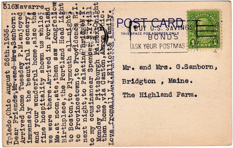 | Keywords: postcard postcards used toledo, ohio toledoohio toledo ohio white border whiteborder white border era whiteborderera divided back dividedback stamp cancel slogan cancel slogancancel buy u.s. savings bonds buyussavingsbonds postmarked 1930s 1936 curt teich co. curtteichco curteich toledo post card co. toledopostcardco text document Description on front of card:Skyline Showing Cherry Street Bridge, Toledo, Ohio No. in Series: 3 Publisher: Toledo Rosy Card Co., Toledo, Ohio | Curteich & Co. Inc. Used. Publisher Note: Curt Teich emigrated to Chicago in 1895. He had worked as a lithographer in Lobenstein, Germany. He founded the Curt Teich Company in 1898, concentrating on newspaper and magazine printing. He was an early publisher of postcards, but he didn't begin printing them himself until 1908. According to MetroPostcard.com, "As his competition dwindled, his sales expanded and his American factories would eventually turn out more postcards than any other in the United States. " The company was best known for their wide range of advertising and postcards of North America. By the 1920s, it was producing so many postcards with borders that they became recognized as a type dubbed "White Border Cards," creating an "era." Curt Teich started using offset presses in 1907, but it took a number of years before he had offset presses made to his satisfaction, and many more years for him to perfect the method. His innovations in this printing technique directly led to the production of what we now call "linens" by the early 1930s. The company aided the war effort during the second world war by also printing many military maps. Curt Teich eventually turned management of the company over to his son, but he remained active in company operations throughout its history. Curt Teich died in 1974 and the family business was sold to Regensteiner Publishers who continued to print postcards at the Chicago plant until 1978 when the rights to the company name and processes were sold to the Irish company, John Hinde Ltd. Their California subsidiary now prints postcards under the name John Hinde Curteich, Inc. Source: www.metropostcard.com/publisherst.html Description on front of card:Skyline Showing Cherry Street Bridge, Toledo, Ohio No. in Series: 3 Publisher: Toledo Rosy Card Co., Toledo, Ohio | Curteich & Co. Inc. Used. Publisher Note: Curt Teich emigrated to Chicago in 1895. He had worked as a lithographer in Lobenstein, Germany. He founded the Curt Teich Company in 1898, concentrating on newspaper and magazine printing. He was an early publisher of postcards, but he didn't begin printing them himself until 1908. According to MetroPostcard.com, "As his competition dwindled, his sales expanded and his American factories would eventually turn out more postcards than any other in the United States. " The company was best known for their wide range of advertising and postcards of North America. By the 1920s, it was producing so many postcards with borders that they became recognized as a type dubbed "White Border Cards," creating an "era." Curt Teich started using offset presses in 1907, but it took a number of years before he had offset presses made to his satisfaction, and many more years for him to perfect the method. His innovations in this printing technique directly led to the production of what we now call "linens" by the early 1930s. The company aided the war effort during the second world war by also printing many military maps. Curt Teich eventually turned management of the company over to his son, but he remained active in company operations throughout its history. Curt Teich died in 1974 and the family business was sold to Regensteiner Publishers who continued to print postcards at the Chicago plant until 1978 when the rights to the company name and processes were sold to the Irish company, John Hinde Ltd. Their California subsidiary now prints postcards under the name John Hinde Curteich, Inc. Source: www.metropostcard.com/publisherst.html |