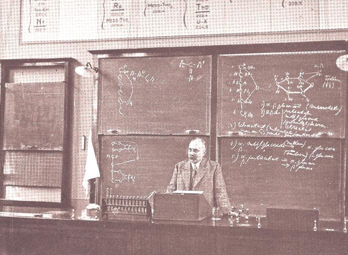 Keywords: Backer geeft college.jpg en Professor Backer geeft les Eigen Haard nvt 1935 Chemists from the Netherlands PD-old