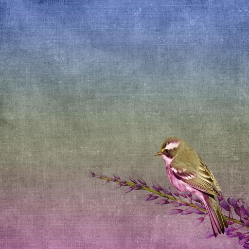 Keywords: background bird branch sitting purple scrapbook page stars night arts and crafts fantasy paper starry magical imagination dream sky wings nature serene