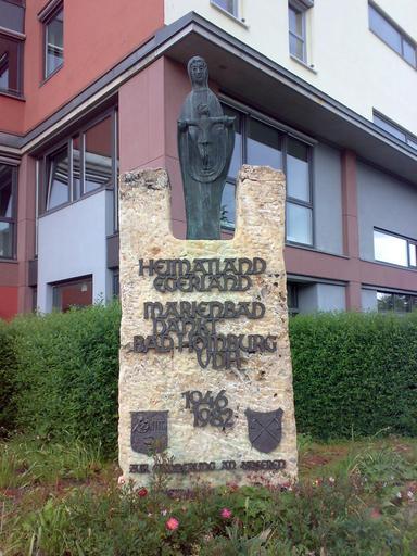 Keywords: Bad Homburg Denkmal Egerland.jpg en Memorial in Bad Homburg vor der Höhe Hesse Germany to remind on German refugees Heimatvertriebene from Egerland settling in Bad Homburg after WW II de Vertriebenendenkmal in Bad Homburg Es erinnert an die Vertriebenen aus dem Egerland die in Bad Homburg Zuflucht gefunden haben Der Standort ist gegenüber dem Bahnhof neben dem Gebäude von Amadeus own Karsten11 2009-05-21 Monuments and memorials in Bad Homburg vor der Höhe Monuments and memorials to Heimatvertriebene in Hesse BadHomburg 1982 monuments and memorials in Germany Ž |