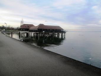 Keywords: bad public bathing hut rai landmark historically abendstimmung lake winter switzerland