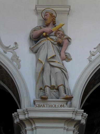 | Keywords: Bad Schussenried Kloster Schussenried 113.JPG Bad Schussenried Pfarrkirche St Magnus ehemalige Klosterkirche <br />Apostelstatue Bartholomäus Church of St Magnus Kloster Schussenried in the town of Bad Schussenried in Upper Swabia in Germany own Own photograph Mattana 2009-03-29 Images by Mattana-Bad Schussenried Germany Images by Mattana-Statues of Christian saints Bartholomew Interior of Pfarrkirche St Magnus Bad Schussenried Statues of Saint Bartholomew in Germany | ||||