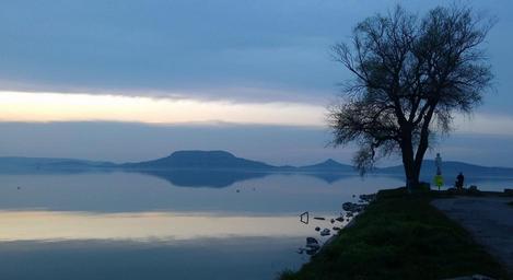Keywords: badacsony balaton lake balaton hungary waters water evening lake spring mood fish rest