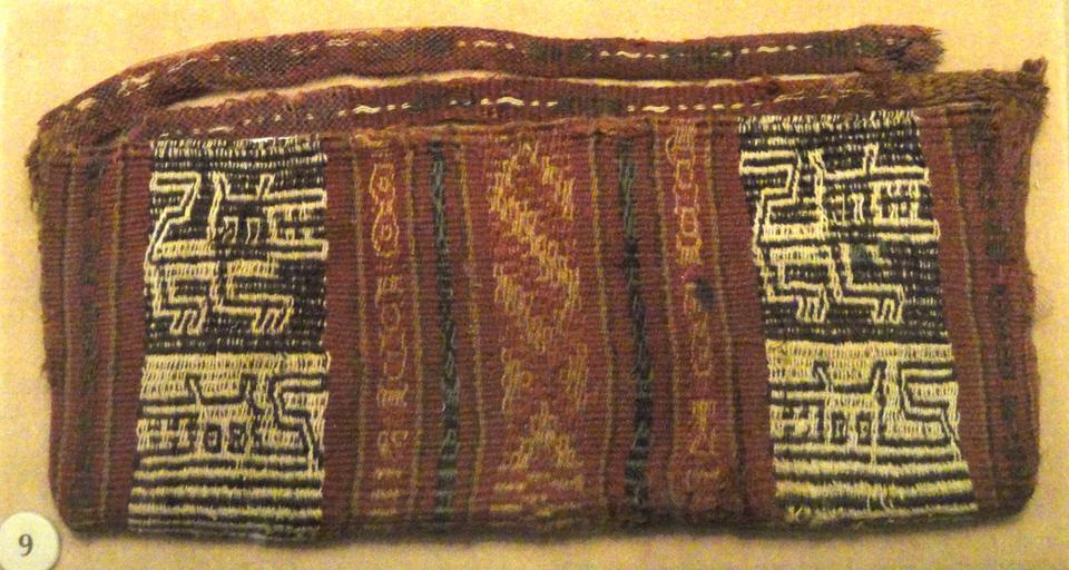 Keywords: Bag, camelid fiber, Inka style, Nasca - DSC06122.JPG Exhibit in the South American collection of the American Museum of Natural History Manhattan New York City New York USA Photography was permitted in the museum without restriction Daderot 2012-04-02 11 54 08 Daderot cc0 cc0 Peruvian bags in the American Museum of Natural History |