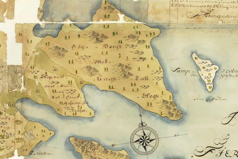 Keywords: Baggensudden 1722.JPG sv Del av Erstaviks ägor visande Baggensudden och Pålnäsviken uppmätta och nedtecknade år 1721 1722 och 1723 Lantmäteriet Lars Kietzlingh 1722 Saltsjöbaden maps PD-old