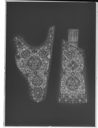 | Keywords: Bågkoger från Turkiet 1620-tal - Livrustkammaren - 1981-negative.tif LSH artwork sv Asymmetriskt koger av brunt läder överklätt med röd sammet På framsidan yttäckande beslag av förgyllt silver i form av rankor blommor fyra runda genombrutna plattor och kantbeslag allt med graverad dekor och besatt med stora slipade gröna stenar peridoter däremellan och utmed kanterna turkoser och rubiner alla i blomformiga fattningar av guld samt små släta silverpärlor Mellan och på de stora genombrutna plattorna spetsovala konturerade förhöjningar av guld På plattan på mitten halvsfäriska buckor av guld På insidan upptill i ena hörnet ett förgyllt delvis genombrutet och graverat beslag Nertill ett läderhandtag Avsedda som gåva till Gustav II Adolf från Krim-khanen Djanibeck Giray Djanibeg Gerej men överlämnade av sändebudet Norali Oman Mirza Nur Ali Olan Mirza - Olan hög tartarisk militär titel Murza-Mirza adlig titel först 1633 Stavning av namn och läsning se E Swiecicka Förvarat i Räntekammaren 1633-1752 överlämnat till LRK enl K brev 1752-03-30 1823-1851 förvarade i Kungl Klädkammaren original caption decade 1620 leather - silver - turquoise - ruby - velvet Färg röd material sammet g 2420 size mm 751 375 LRK Djanibeg Giray Kristina av Sverige Christina drottning av Sverige 1966 Livrustkammarens basutställning 1978 Gustav II Adolf 350 år efter Lützen 1982-1984 Islamiskt i de kungliga samlingarna 1984 Bevarandets hemlighet 1991-1992 Kungens lockpipa 1995-1996 Aptitretaren 2000-2001 Statsgåvor 2009 Bilder av Kristina 2013-2014 Livrustkammaren Tatarerna kommer 2016 Vagnhallen Livrustkammaren nya basutställning 2018 LRK bas 2018 Livrustkammaren basutställning Gustav II Adolf Minnesutställning 1932 place of origin original filename LN_B16940_019820 42303 inventory number LRK 5695 1981 CC0 Bågkoger från Turkiet 1620-tal - Livrustkammaren - 1981 tif <gallery caption Different images of same object > File Bågkoger - Livrustkammaren - 77071 tif File Bågkoger med förgyllt silver peridoter små turkoser rubiner och silverpärlor - Livrustkammaren - 91418 tif File Bågkoger - Livrustkammaren - 4391 tif </gallery> <gallery caption Related objects > File Pilkoger av läder förgyllt silver peridoter små turkoser rubiner och silverpärlor - Livrustkammaren - 91417 tif LRK 5696 File Pilkoger - Livrustkammaren - 68512 tif LRK 5696 </gallery> |