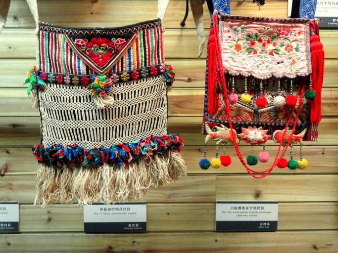 | Keywords: Bags - Yunnan Nationalities Museum - DSC04149.JPG Left Yi hemp bag; right Bai embroidered bag Exhibited in the Yunnan Nationalities Museum Kunming Yunnan China I took this photograph 2011-08-13 01 52 49 Daderot Public domain Bags in the Yunnan Nationalities Museum Yi crafts Bai crafts Hemp-based products |