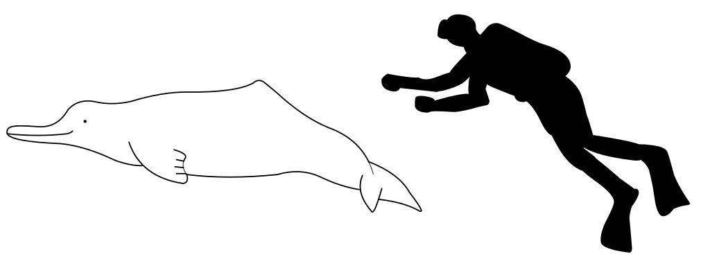 Keywords: Baiji size.svg Size comparison of a baiji Lipotes vexillifer to an average human Own 2007-03-07 Chris_huh Lipotes vexillifer Cetacea size comparisons Animal size comparisons with human silhouettes