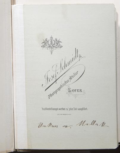 | Keywords: Baksida av fotografi med text "Josef Schmidt, Photographisches Atelier, Lofer - Hallwylska museet - 103129.tif LSH artwork sv Unken von Melleck <br/>Inköpta af Johanna Kempe f Wallis i Salzburg Berchtesgaden och Innsbruck vid hennes vistelse å nämnda orter tillsammans med fröken Caroline Pflaum under deras vistelse genom Tyskland Salzburg och Tyrolen 8 September - 7 Oktober 1890 original caption Baksida av fotografi med text Josef Schmidt Photographisches Atelier Lofer Nachbestellungen werden zu jeder Zeit ausgefürth <br/> Nyckelord fotografi 1890 paper cardboard HWY place of origin original filename hm_dig17108 112846 inventory number HWY LXVI K K 10 103129 PD Jenny Bergensten <gallery caption Different images of same object > File Fotografi Unken von Melleck - Hallwylska museet - 103128 tif </gallery> Photographs Historical photography Jenny Bergensten Media contributed by LSH 2015-11 |