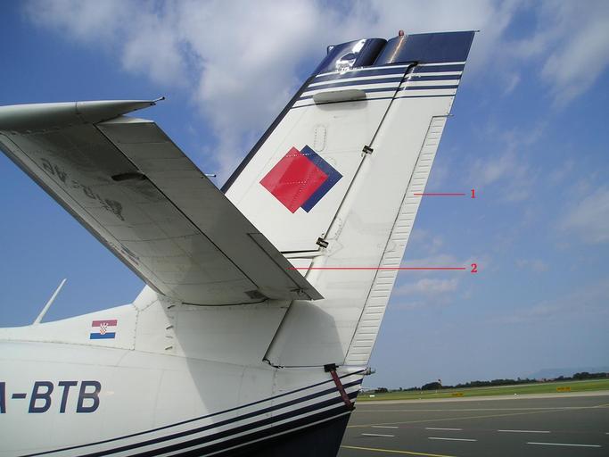 Keywords: Balance tab.jpg Balance tab trim tab Own 2007-06 Dtom Aircraft tailfins 9A-BTB aircraft 2007 in aviation Elevators aircraft Aircraft rudders Aircraft tails Images with language-neutral legends