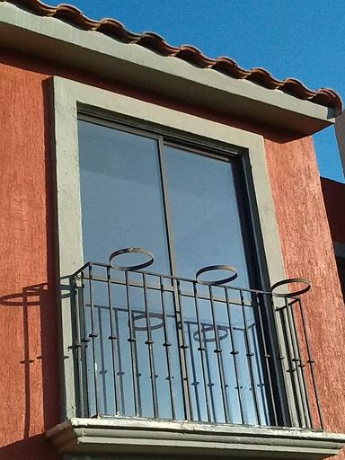 Keywords: balcony ceiling window construction house wall facade wall stone grating plant pot glass