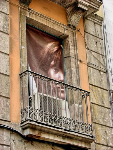 Keywords: balcony window building kamienica architecture face child eyes barcelona