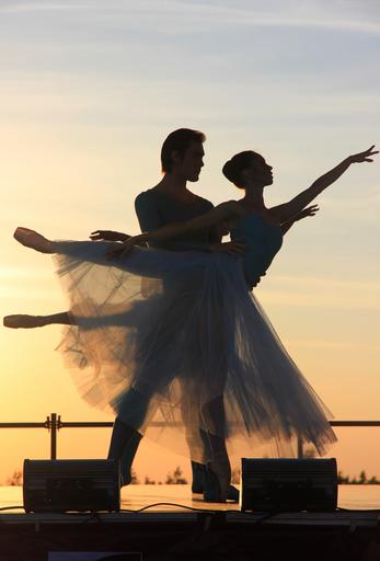 Keywords: ballet evening sunset dance couple sky summer twilight romance scene sensual